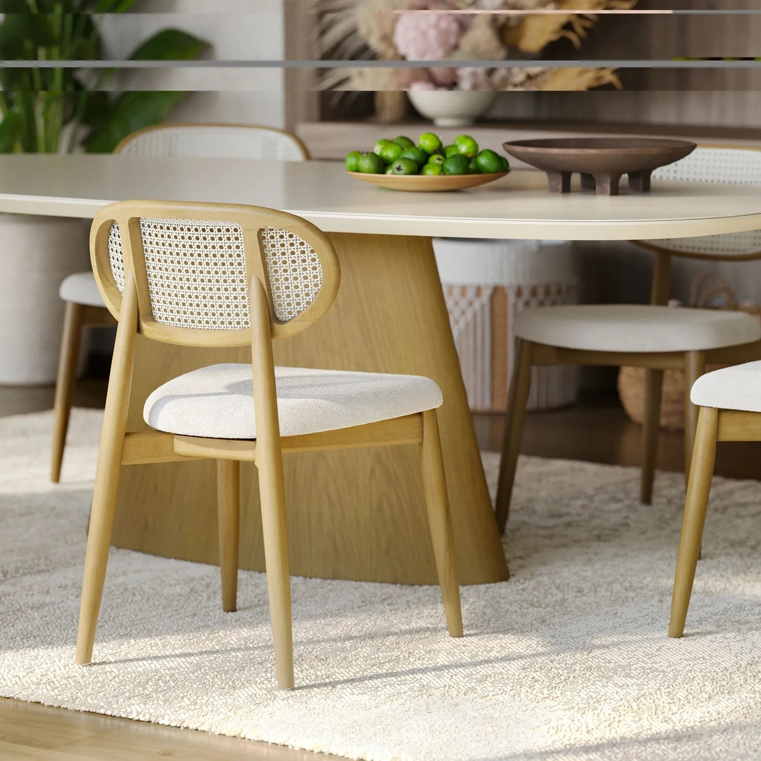 What sets Aria apart is its handcrafted straw inlay on the backrest, adding a warm, organic texture that feels both classic and contemporary. Whether styled with a matching table or used as an accent chair, Aria balances practical comfort with thoughtful design.