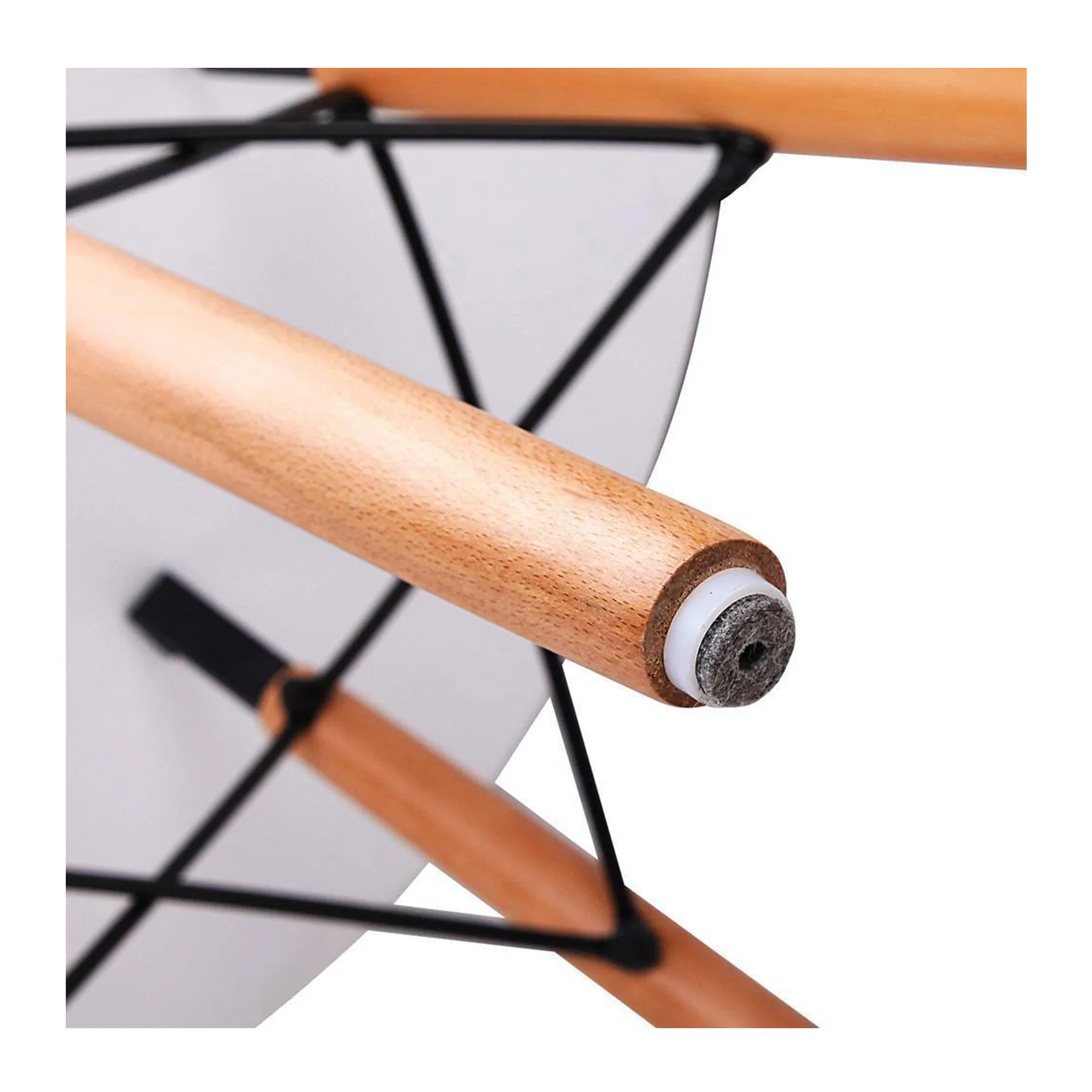 The legs are constructed of natural beech wood with black lacquered steel support rods. The circular top is constructed of high-quality white MDF. This quality table will bring refined style to your decor. It comfortably accommodates 3 to 4 people.