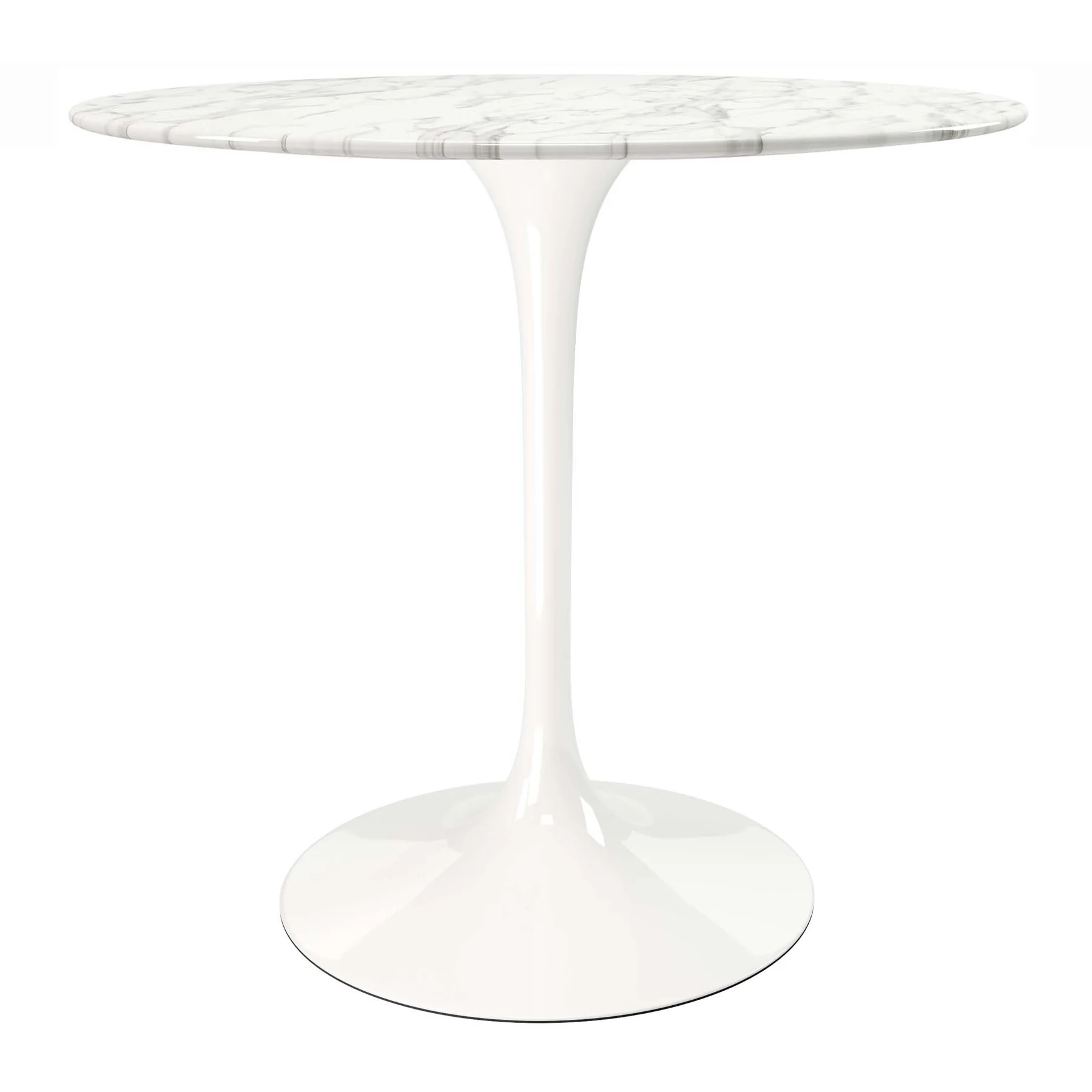 The round tabletop is crafted from thick, solid artificial marble with a smooth polyester sealant that resists chips and scratches. It’s supported by a glossy, lacquered metal pedestal that keeps things visually light but grounded. Matching Tulip chairs feature an ABS plastic shell, a cushioned PU leather seat, and a smooth swivel base, offering both comfort and flexibility. From the materials to the finish, this set is built to look beautiful and live well.