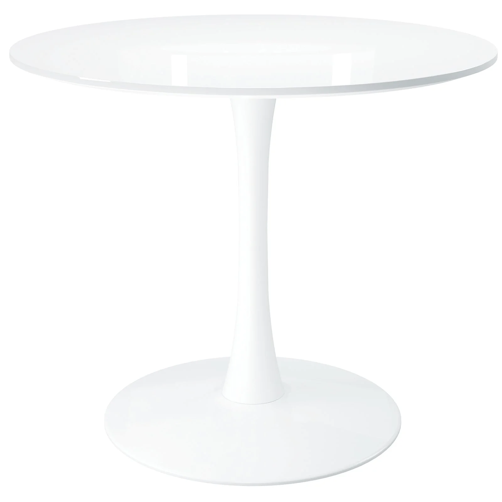 Discover the perfect modern dining set for your home. This sleek set includes a round pedestal wood top dining table with a white matte lacquer finish and a sturdy powder-coated steel base. Perfectly pairs with four mid-back chairs crafted from durable ABS plastic and supported by beech wood tapered legs with non-skid foot caps, this set blends style and stability. Ideal for compact dining areas or contemporary kitchens. Table and chairs are available for purchase separately.